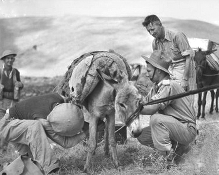 Mule trains were brought in to help because of the terrain and the shortage of trucks, but in taking the fight to the enemy the men still had to make many exhausting marches carrying heavy loads of stores and ammunition. They were often short of food and water. Oven-like heat by day and bitter cold nights, with the men wearing only summer uniforms, tested endurance to the limit.